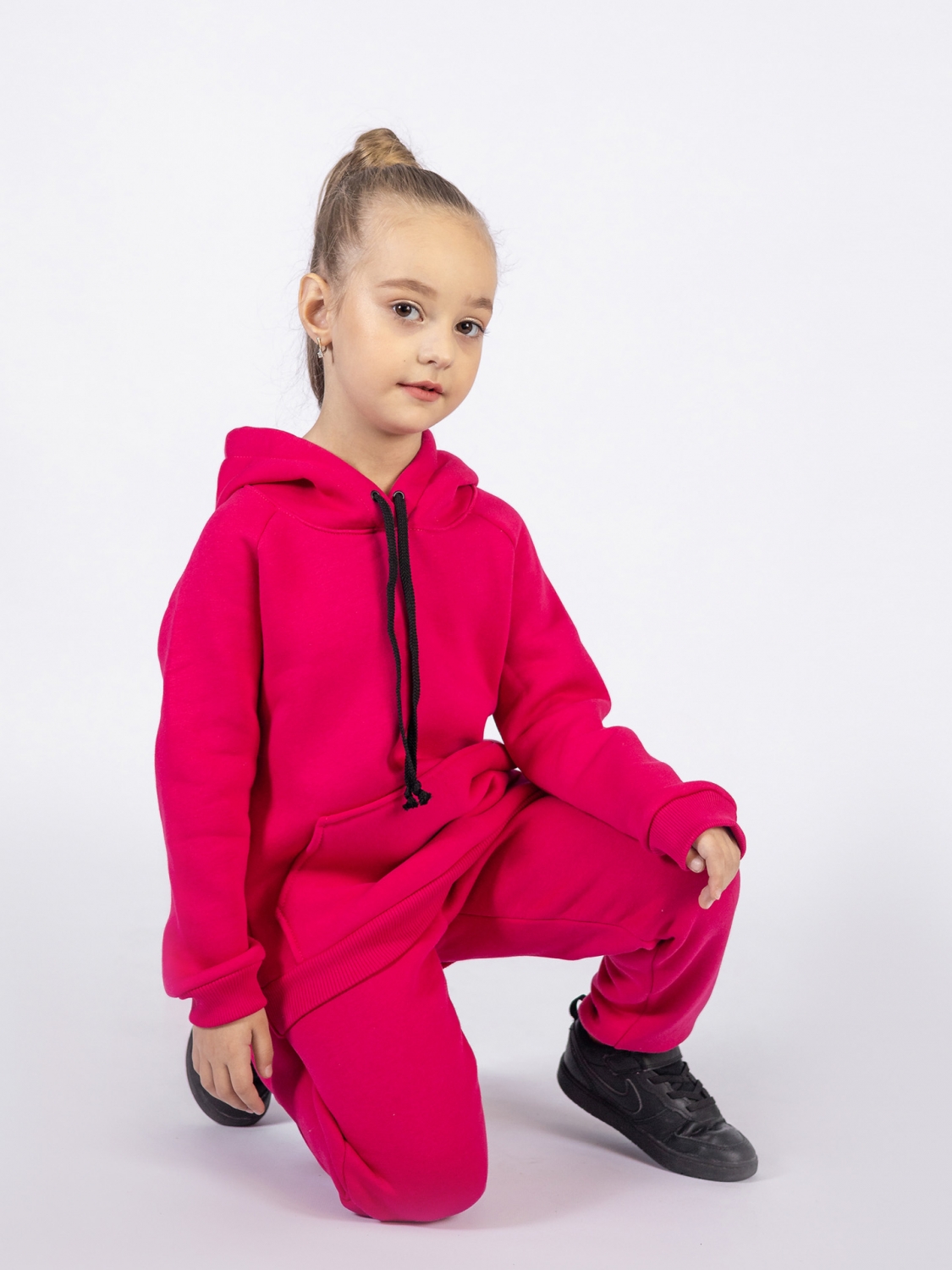 Теги: Детские костюмы оптом от производителя. 296-Ф. Свитшот с капюшоном + Штаны, хлопок 65%, 35% ПЭ, 3-х нитка (начес) фуксия 122,128,134,140 цена,отзывы официальный сайт "Стеша Будённовск"