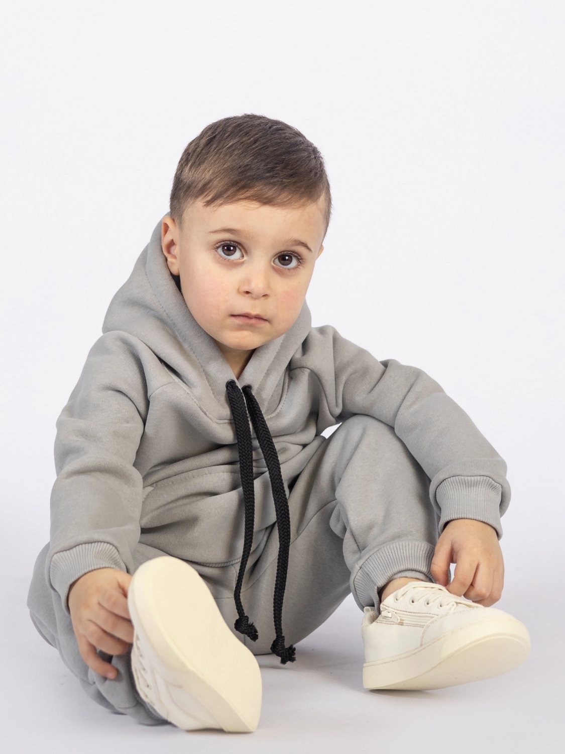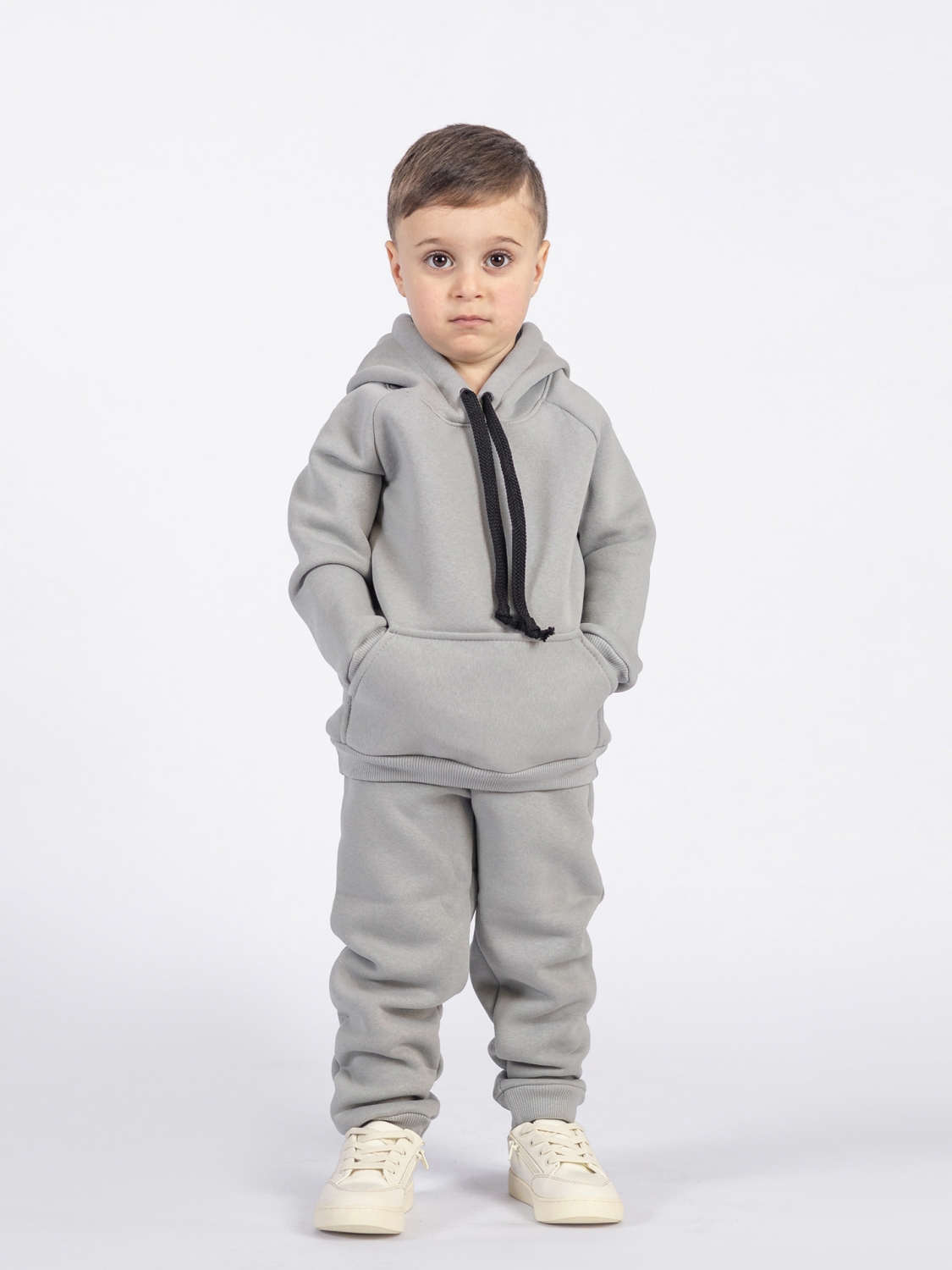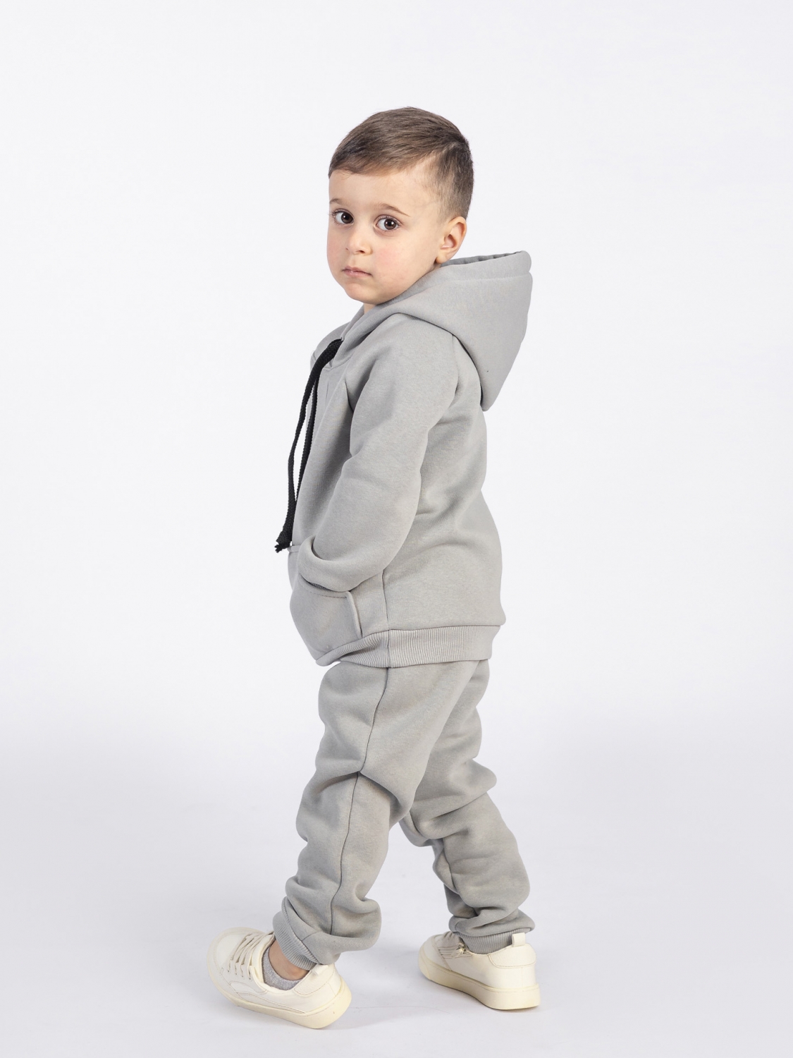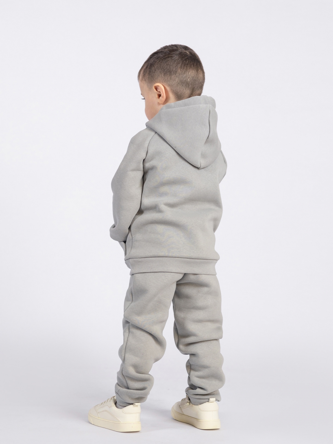 Купить оптом 296-С. Свитшот с капюшоном + Штаны, хлопок 65%, 35% ПЭ, 3-х нитка (начес) серый 122,128,134,140 в Будённовске