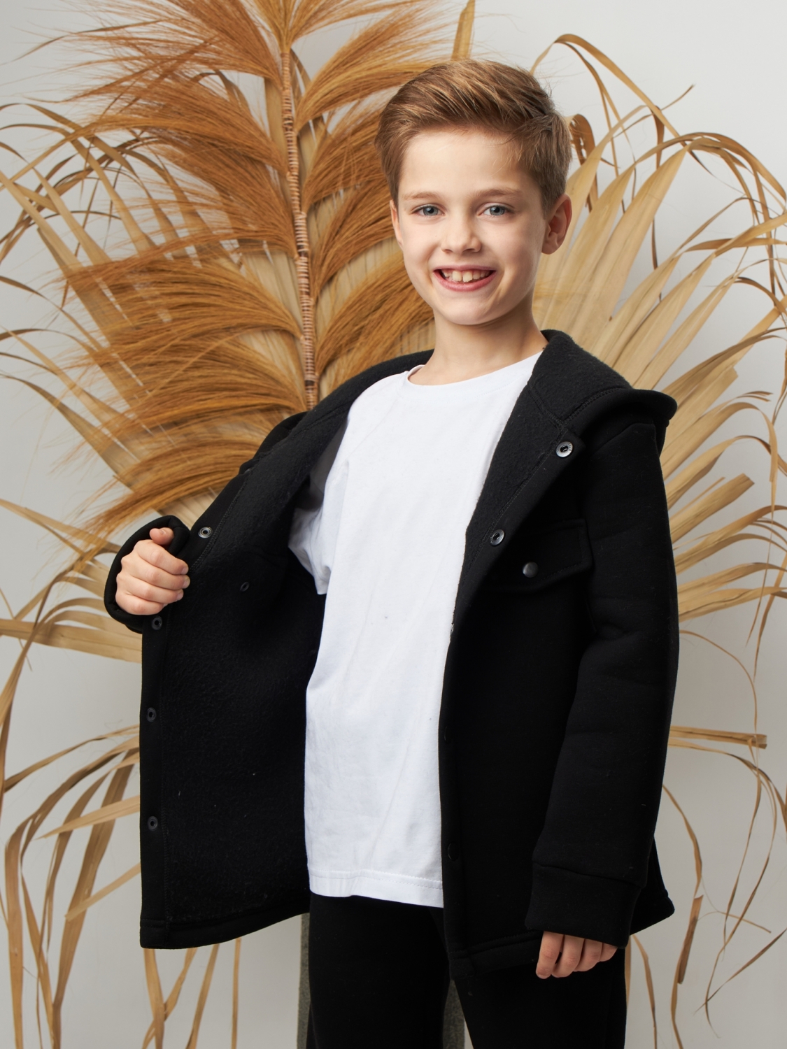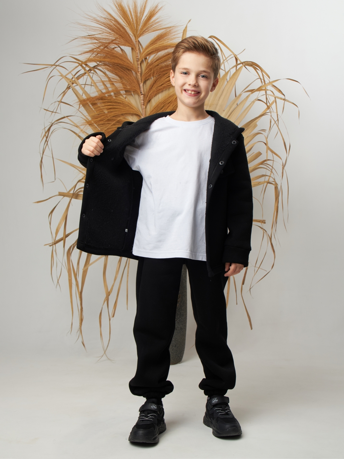 333. Костюм детский (Брюки+Толстовка) на кнопках, черный, хлопок 65%, 35% ПЭ, 3-х нитка с начесом 98,104,110,116